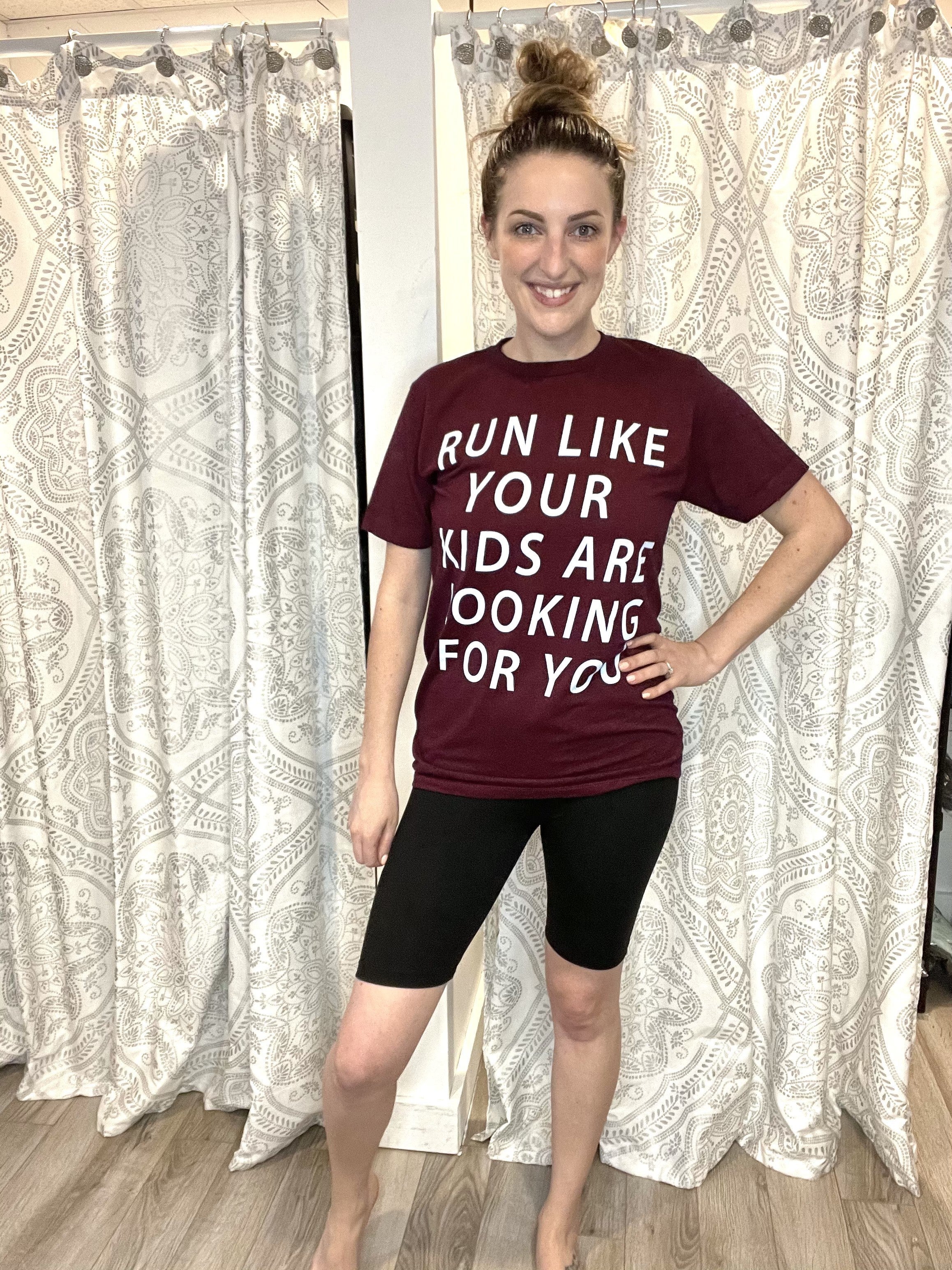 The stretch in these shorts is epic! These are comfy, stretchy biker shorts with a mid-rise. Pair with a graphic tee for a casual comfy look.