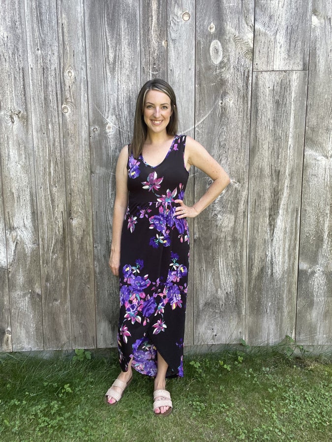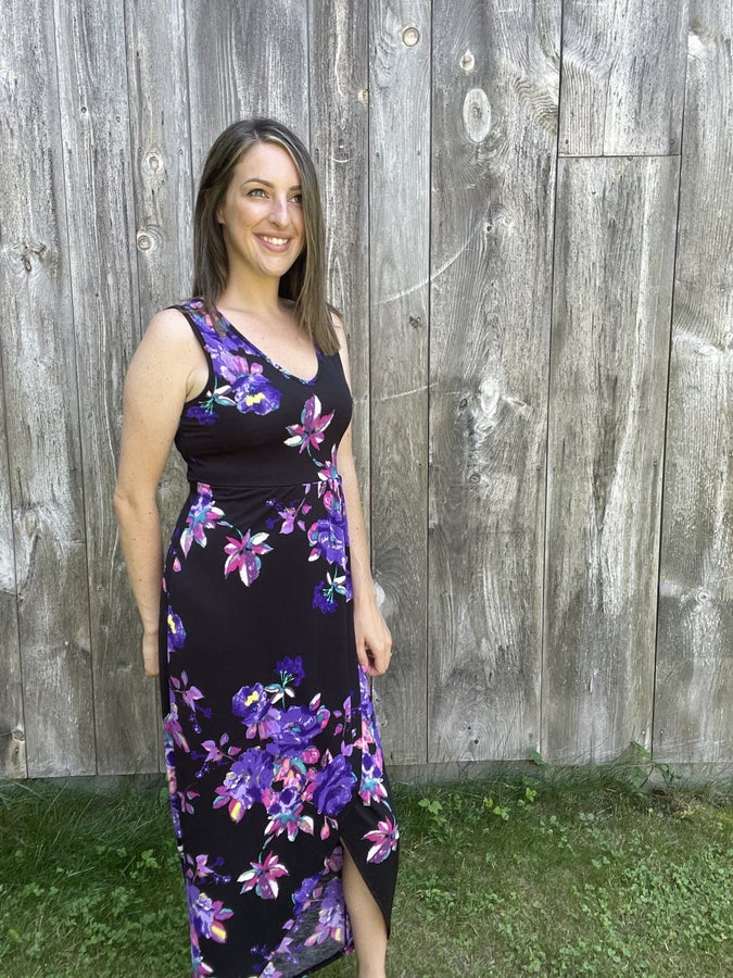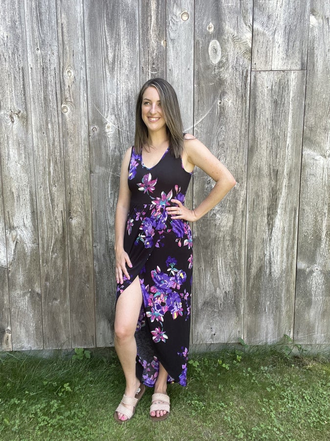 Purple Floral Maxi Dress w/ Faux-Wrap Look