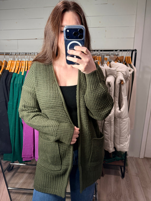 Waffle Cardigan in Olive