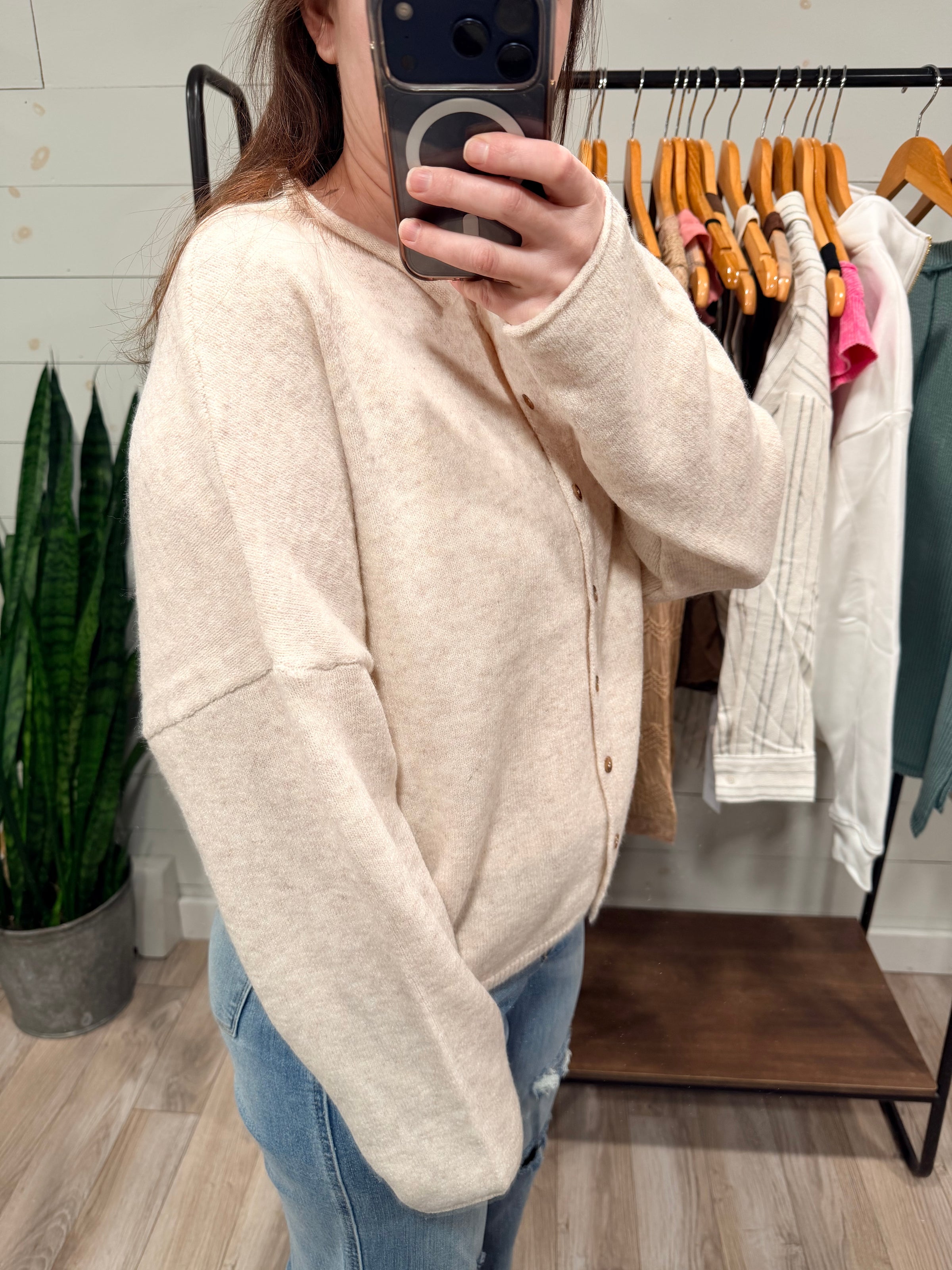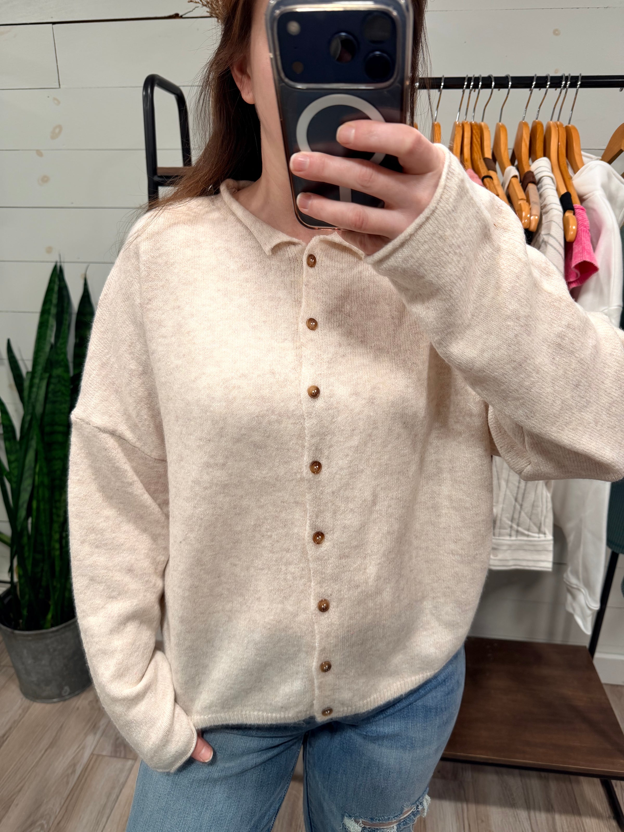 Throw on this charming beige cardigan and instantly elevate your everyday look. Featuring a crisp collared neckline and classic button-down front, it's the perfect layer for those "what should I wear?" moments. The relaxed boxy fit offers comfort without sacrificing style—pair it over a tee, dress it up with a blouse, or wear it solo. Versatile, timeless, and oh-so-easy to love.
