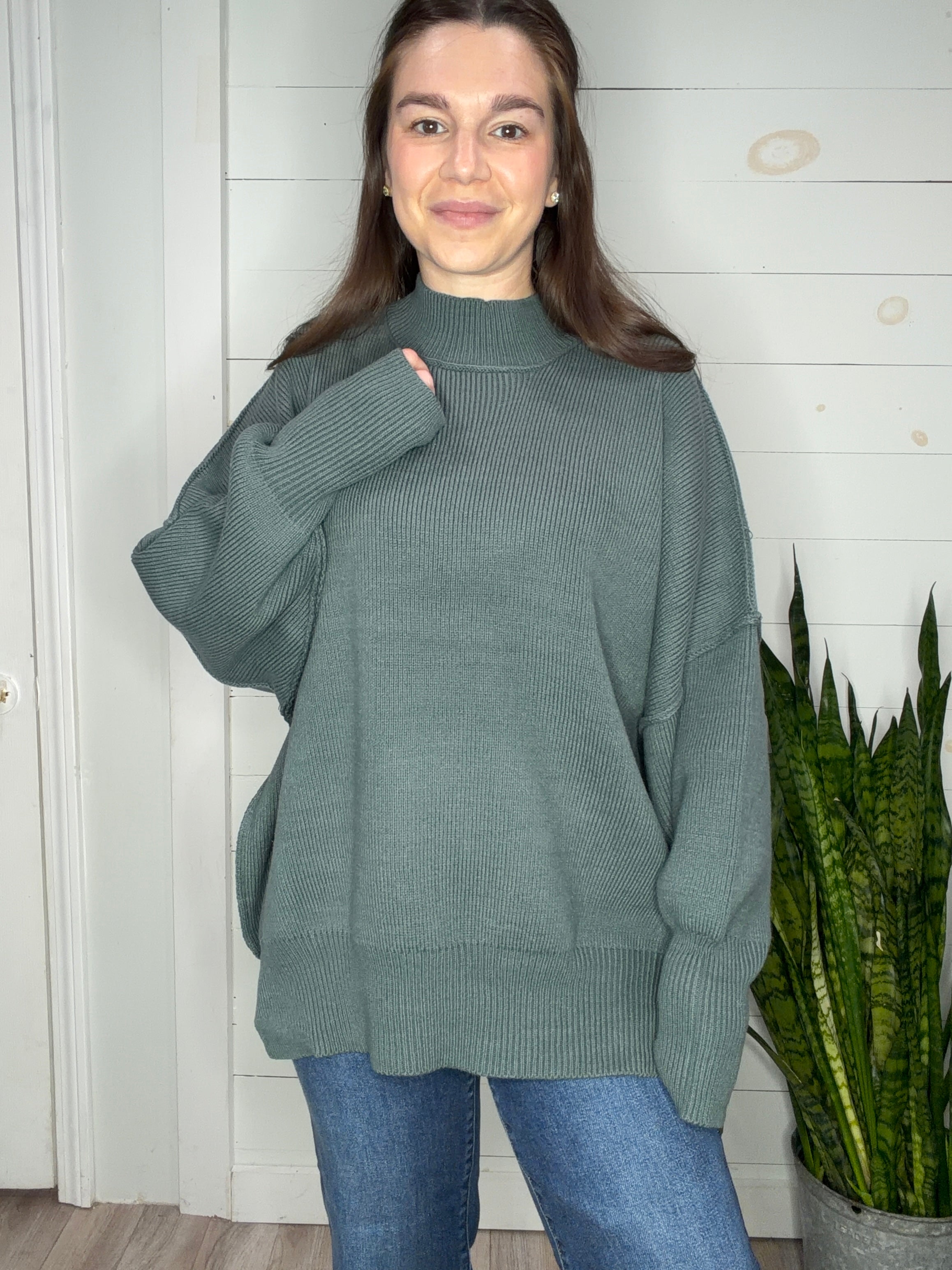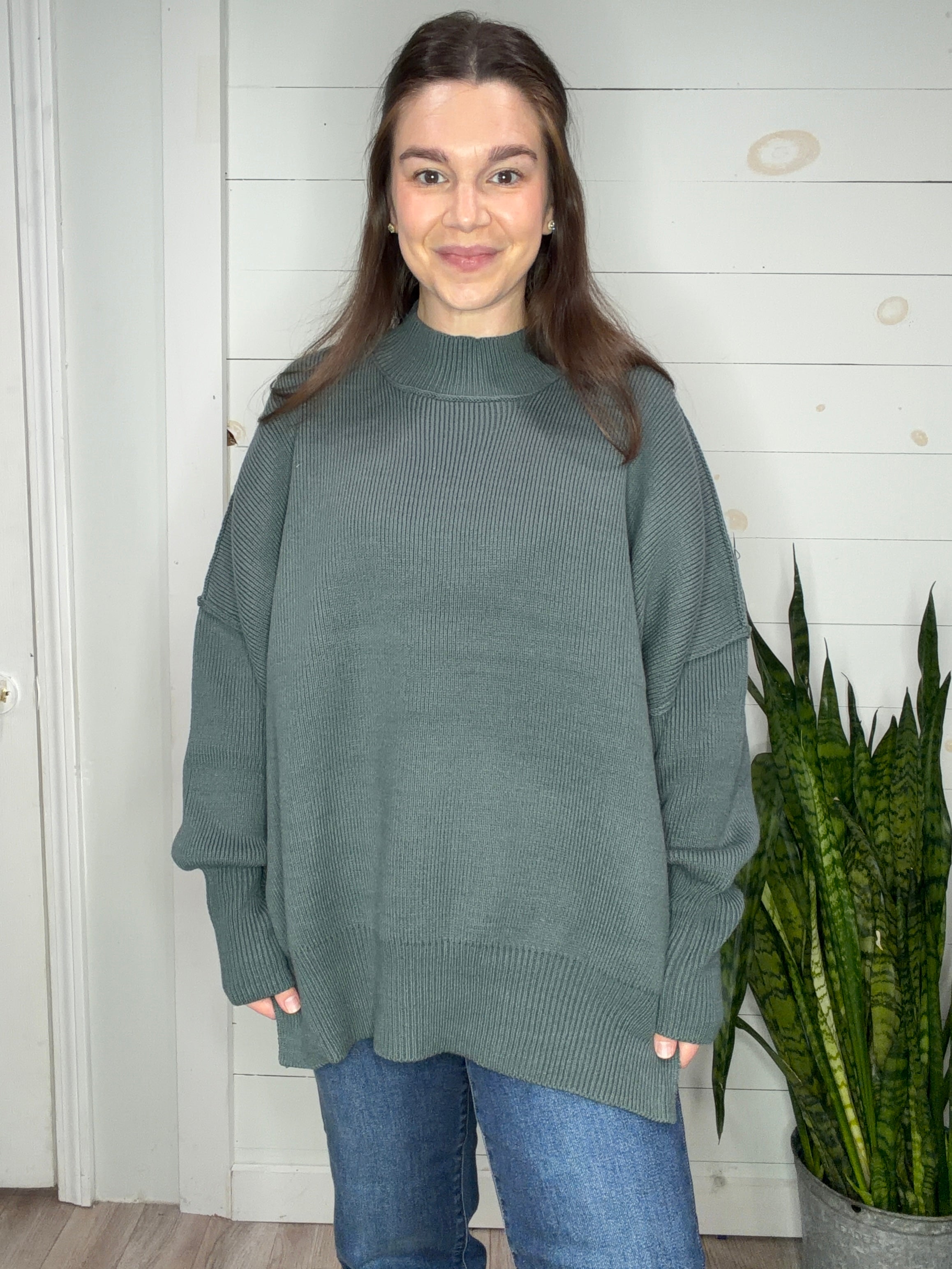 Wrap yourself in pure comfort with this oversized mock neck sweater that's basically a warm hug you can wear. The relaxed silhouette drapes beautifully while the cozy knit keeps you toasty through chilly days. Side slits add a touch of effortless style, letting you move freely without sacrificing that snug, enveloping feel. Perfect for layering or going solo, this bone-colored essential pairs with everything in your closet and feels as good as it looks.
