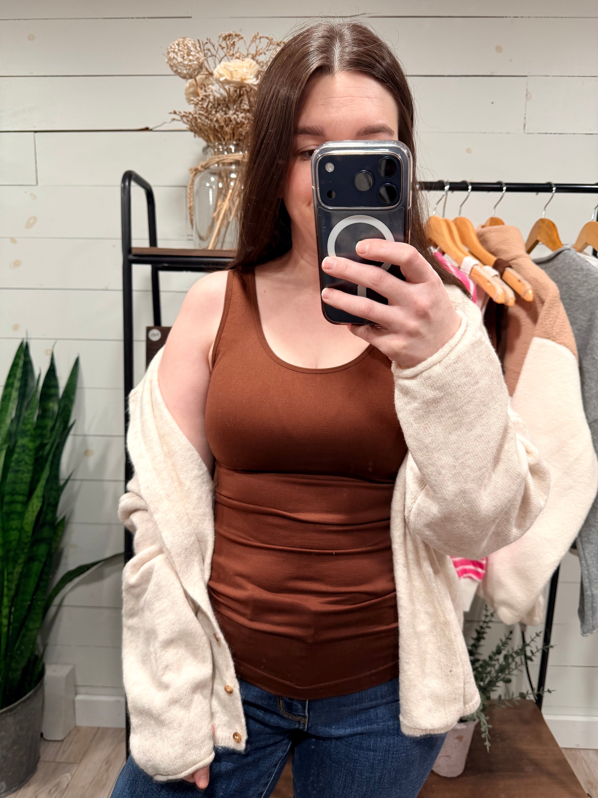 Get double the style with our 2 Way Layering Tank Top in beige! This tank top features a reversible design, allowing you to switch between a classic u-neck or trendy v-neck look. Fitted for layering, this tank is the perfect addition to any outfit. Stay stylish and versatile with this must-have top.
