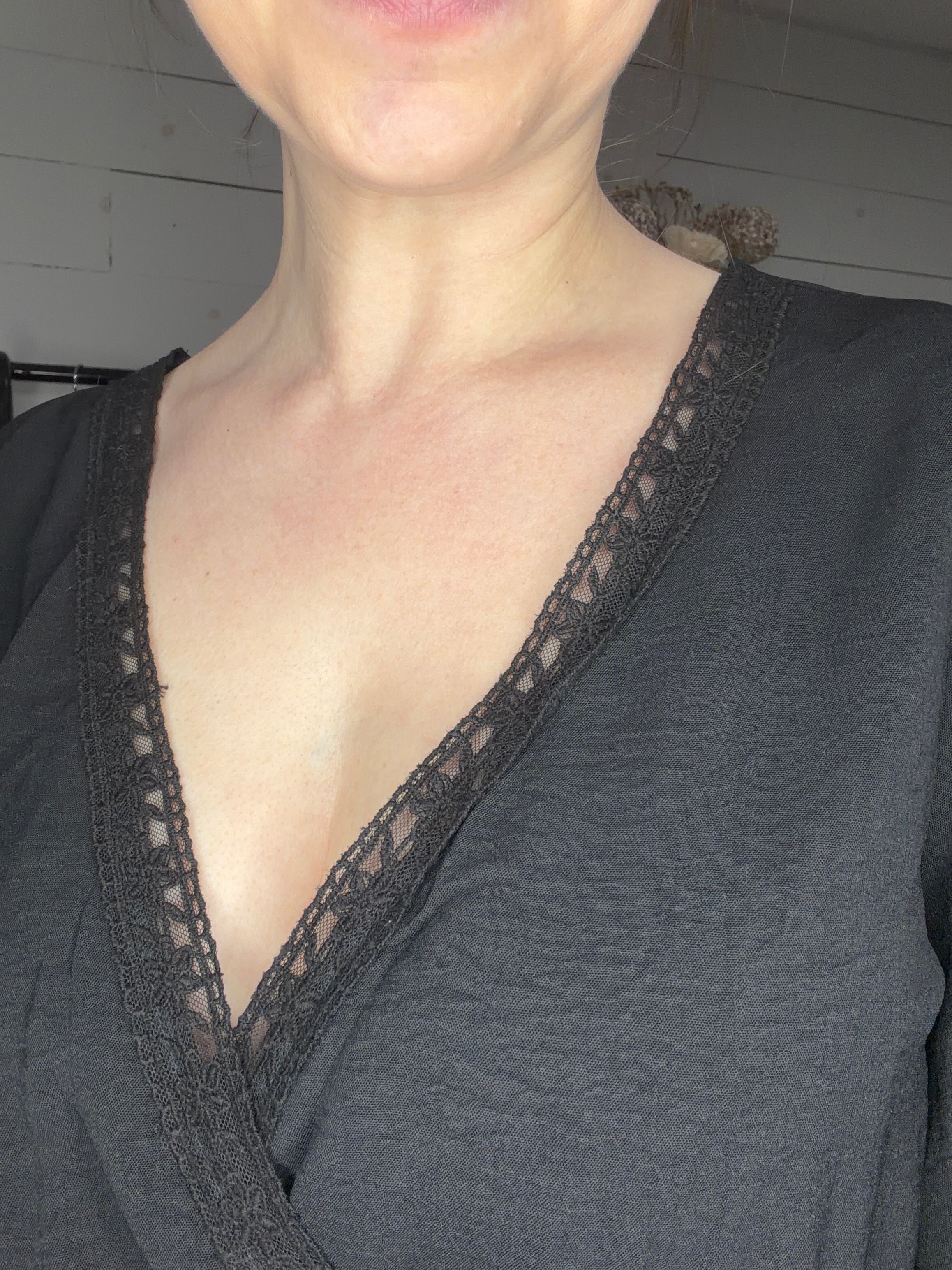 • lace detailed crossover V neckline